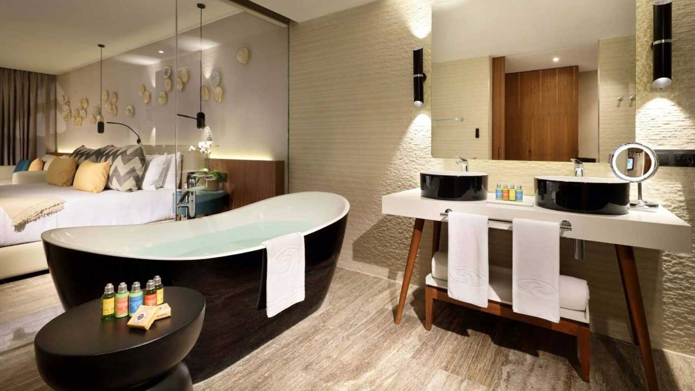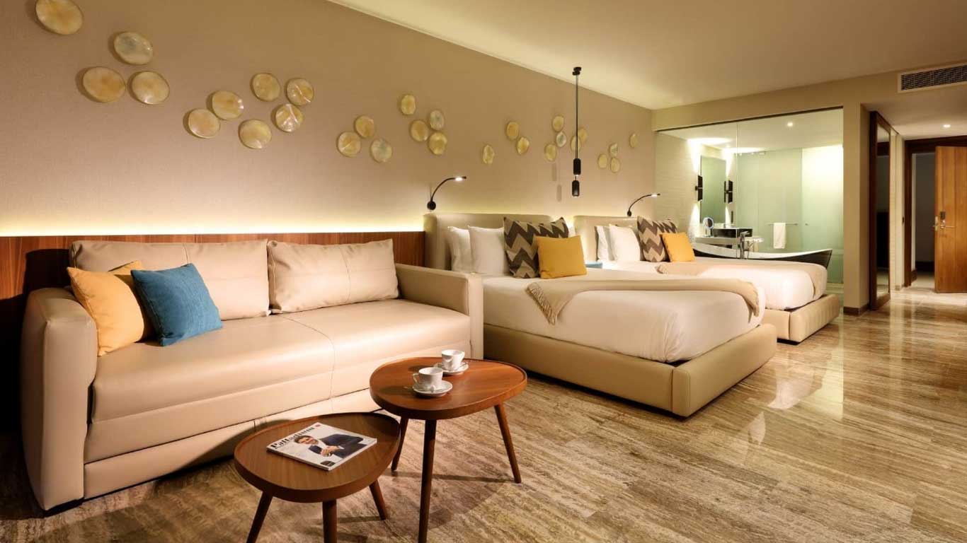 The Family Selectio Junior Suite Pool Access Beachside at Grand Palladium Costa Mujeres has one king size bed or two queen sizes with a memory foam mattress. Enjoy a VIP experience with your family with Family Butler services, Family Boss facilities for children and much more besides!
